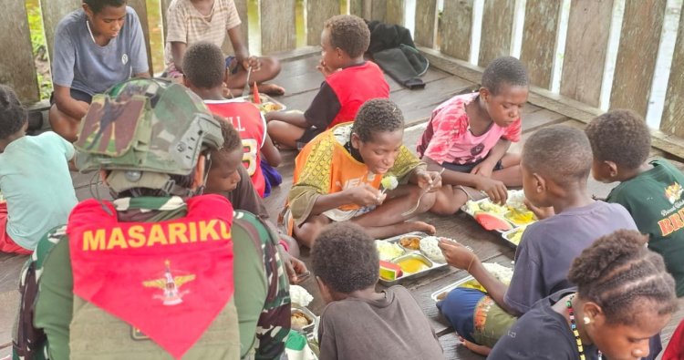 ASMAT – Di sedang denyut keberadaan pedalaman Mumugu, Kota Asmat, Papua Selatan, sebuah inisiatif mulia dirilis oleh Satgas Pamtas Mobile Yonif 733/Masariku. Proyek bertajuk “Masariku Peduli Gizi” hadir untuk menyentuh secara langsung masa depan anak-anak Papua, dimulai dari SD Rimba YPPK Yan Smith Santo Aloysius Mumugu 2. Proyek ini tidak sekadar pembagian makanan, melainkan jembatan perhatikan antara para prajurit dan juga harapan generasi penerus bangsa.