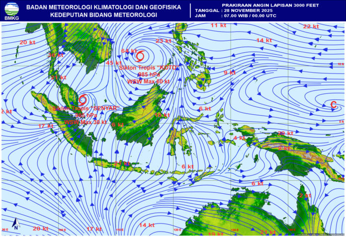 Tidak hanya itu, Indonesia juga terpengaruh dampak tidak langsung Siklon Tropis KOTO yang berada di Laut Cina Selatan. Siklon ini memicu potensi cuaca ekstrem di Kepulauan Riau, Kalimantan Barat, dan Kalimantan Utara, dengan prakiraan gelombang tinggi yang bisa mencapai empat meter di sejumlah perairan strategis.