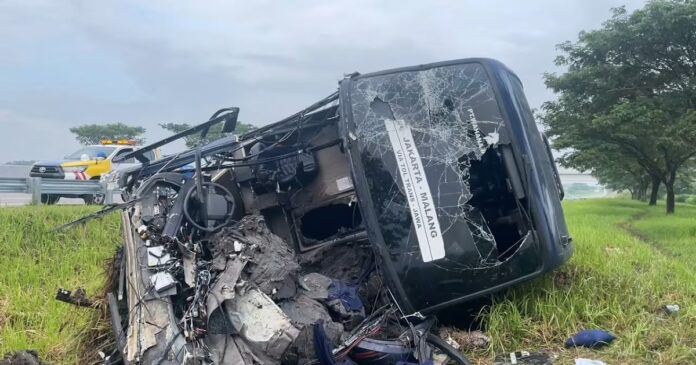 SBCNews.id – Kecelakaan lalu lintas yang melibatkan sebuah bus dan truk boks terjadi di Jalan Tol Solo–Ngawi KM 566 A, tepatnya di Desa Bangunrejo Kidul, Kecamatan Kedunggalar, Kabupaten Ngawi, Kamis (12/2/2026) sekitar pukul 04.30 WIB.