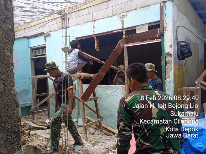 SBCNews.id-Program rehabilitasi Rumah Tidak Layak Huni (RTLH) menjadi salah satu fokus utama dalam pelaksanaan TMMD Ke-127 TA 2026 oleh Kodim 0508/Depok di Kelurahan Sukamaju, Kecamatan Cilodong, Kota Depok.