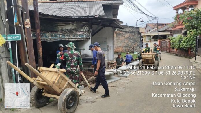 SBCNews.id – Program TMMD Ke-127 TA 2026 Kodim 0508/Depok terus bergerak progresif. Pada Sabtu, 21 Februari 2026, pengerjaan pembuatan drainase sepanjang 200 meter di Jl. Bojong Lio RT 03/28, Kelurahan Sukamaju, Kecamatan Cilodong, telah mencapai 50 persen.